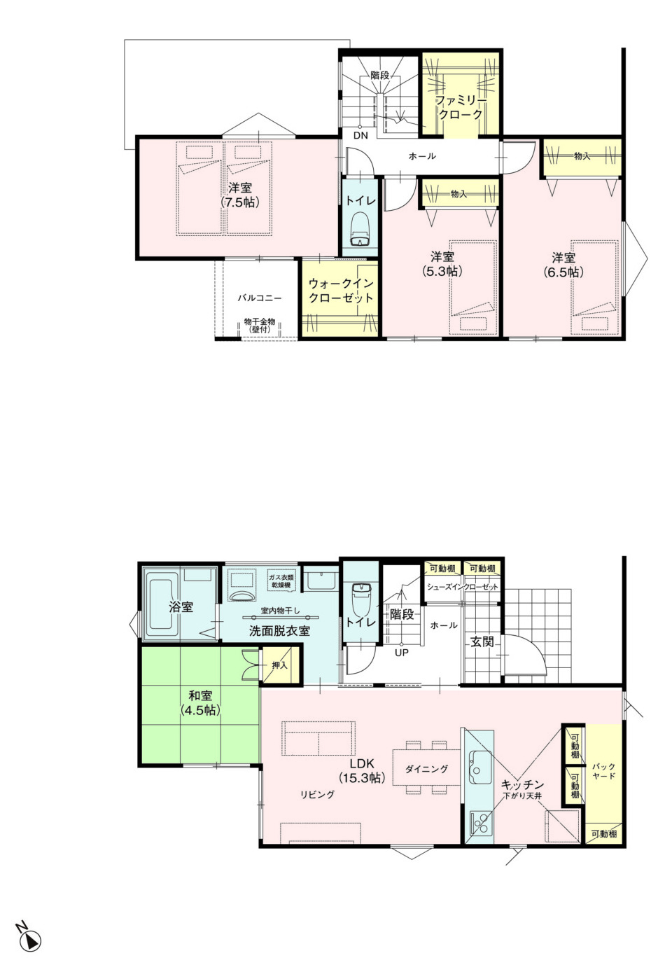 1階、2階それぞれにファミリークロークがある3LDKです。