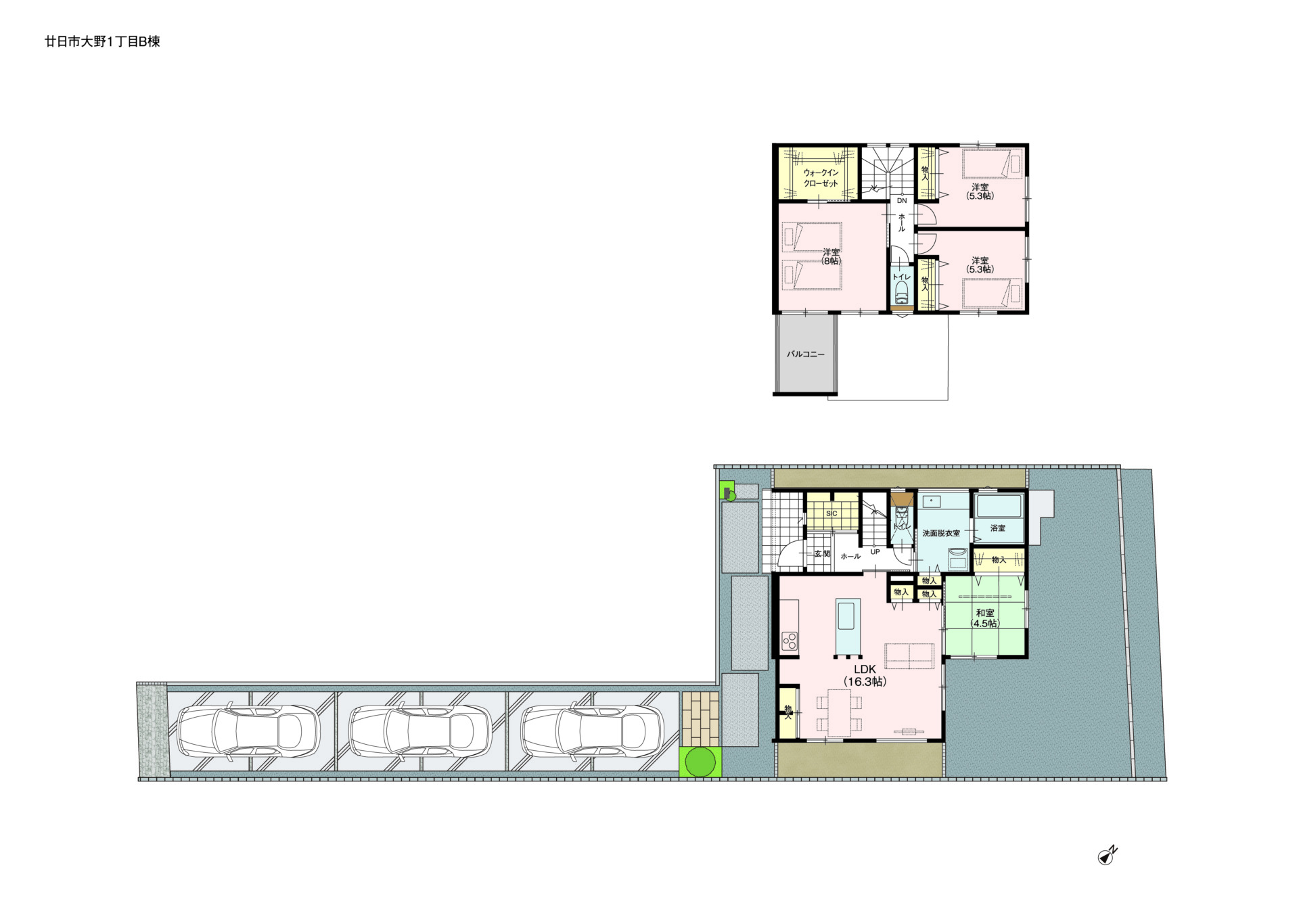 2階建て / 3台駐車可能 / 和室 / バルコニー / ZEH水準フラット35Sに対応 / 地盤調査済 / LDK15帖以上 / 南東向き / システムキッチン / Ⅱ型キッチン / 横並びダイニング / 陽当り良好 / 全居室収納 / 閑静な住宅地 / 前道5m以上 / シャワー付洗面化粧台 / EV車充電設備 / トイレ2ヶ所 / 浴室1坪以上 / 温水洗浄便座 / 浴室に窓 / 節水型トイレ / 通風良好 / ウォークインクローゼット / シューズインクローク / IHクッキングヒーター / 樹脂サッシ / 全居室Low-E複層ガラス / 食器洗乾燥機 / オール電化 / 浄水器