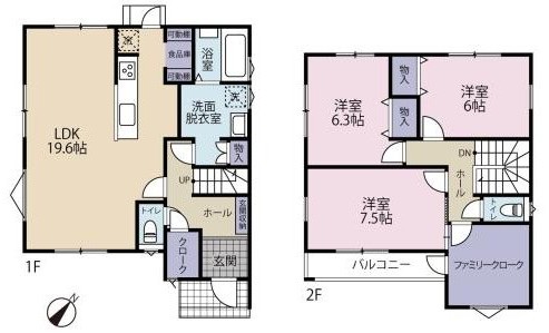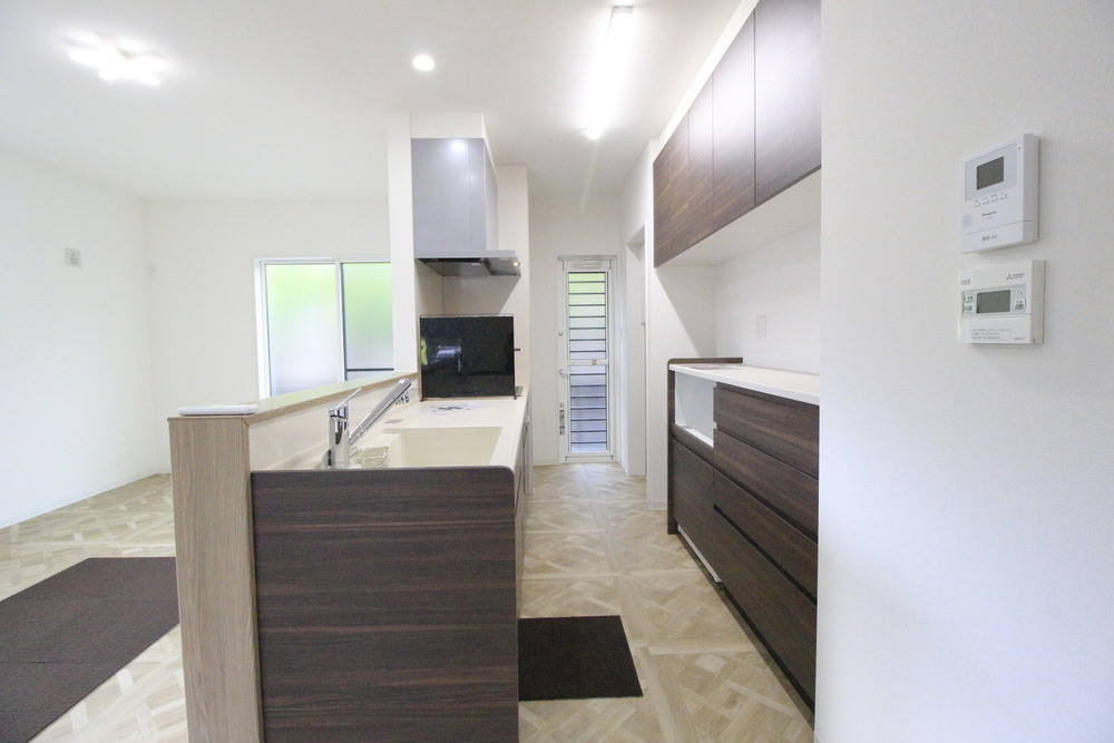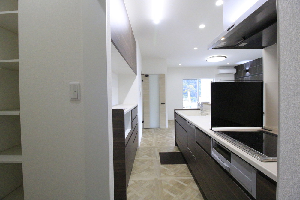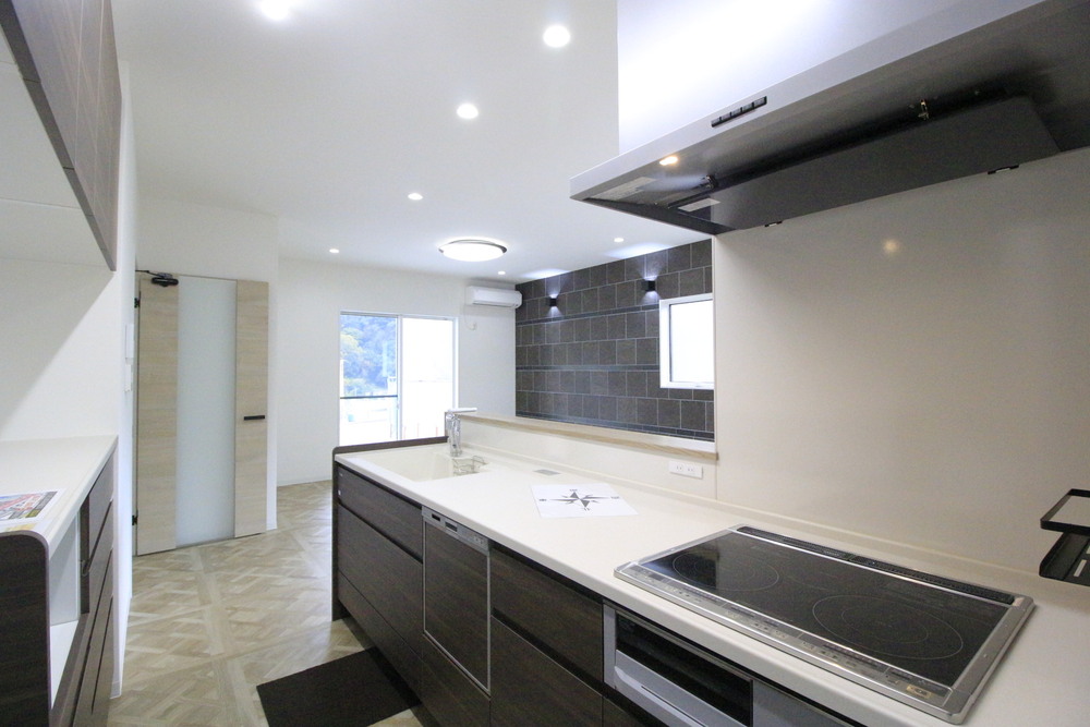 駐車2台可 / LDK15帖以上 / システムキッチン / 対面式キッチン / IHクッキングヒーター / ファミリークローク / 陽当り良好 / 全居室収納 / シャワー付洗面化粧台 / トイレ2ヶ所 / 浴室1坪以上 / 2階建 / 温水洗浄便座 / 浴室に窓 / 浴室乾燥機 / 南面バルコニー / 通風良好 / 全居室フローリング / 食品庫/ 食器洗乾燥機 / シューズインクローク / ファミリークローク / 洗面室収納 / 周辺交通量少なめ / オール電化 / 宅配ボックス