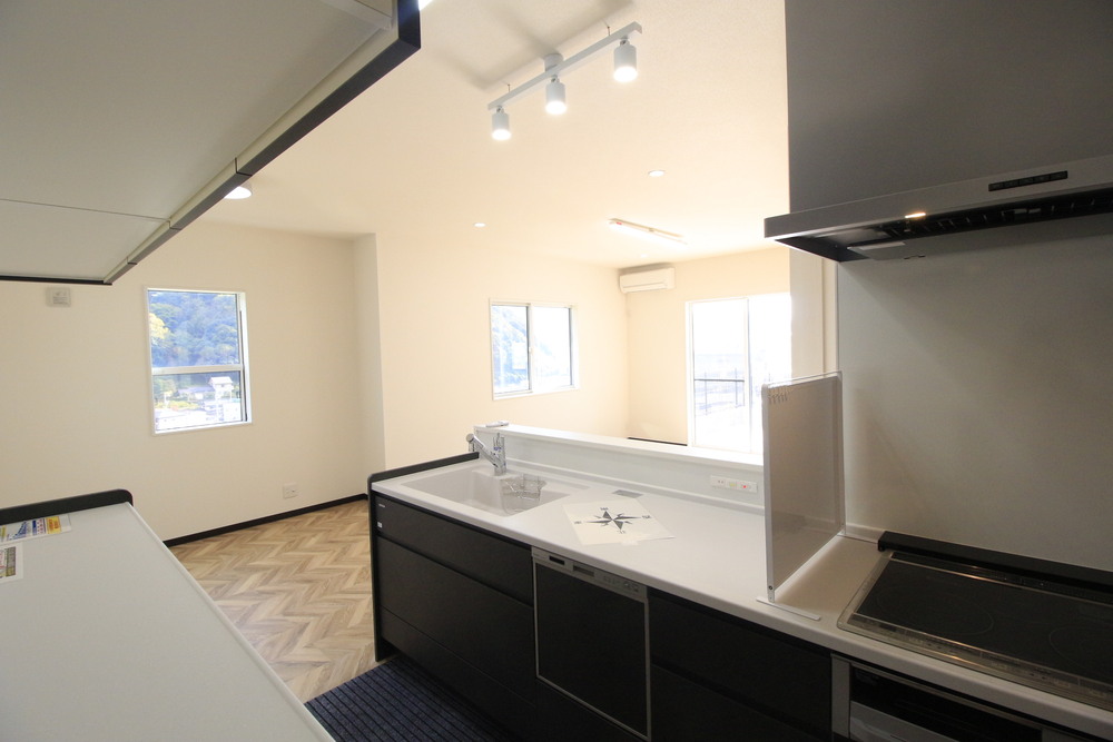 駐車2台可 / LDK15帖以上 / システムキッチン / 対面式キッチン / IHクッキングヒーター / サンルーム / 陽当り良好 / 全居室収納 / シャワー付洗面化粧台 / トイレ2ヶ所 / 浴室1坪以上 / 2階建 / 温水洗浄便座 / 浴室に窓 / 浴室乾燥機 / バルコニー / 通風良好 / 全居室フローリング / パントリー/ 食器洗乾燥機 / シューズインクローク / 洗面室収納 / 周辺交通量少なめ / オール電化 / 宅配ボックス