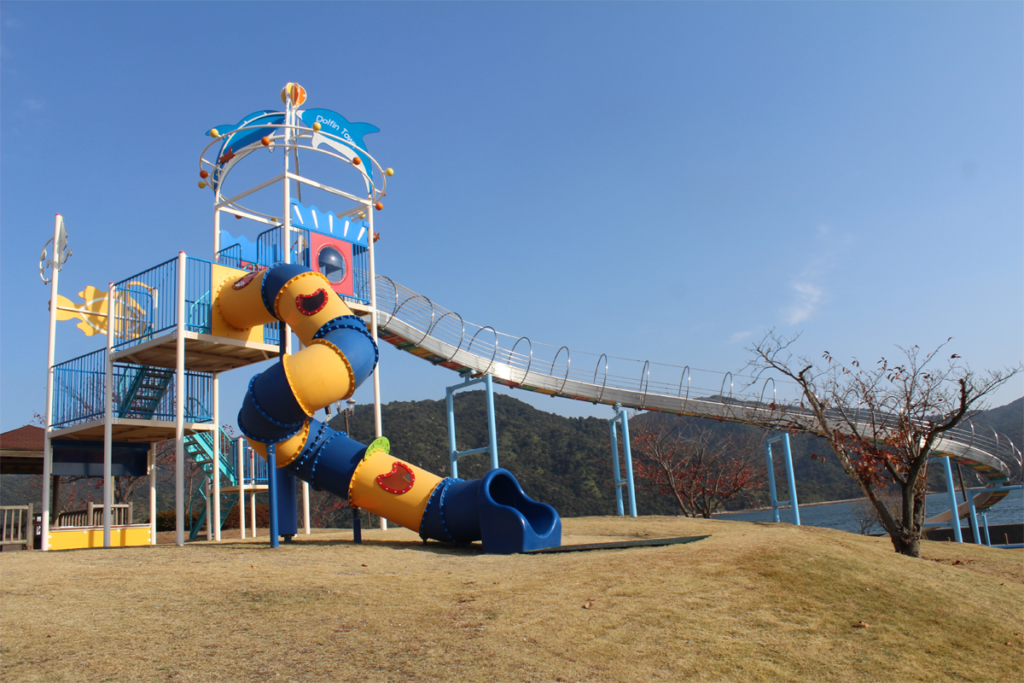 大型複合遊具やターザンロープ、ローラー滑り台など子どもたちが大喜び間違いなしの遊具が盛りだくさん!駐車場もトイレも完備されており、のんびりした時間を過ごしていただけます